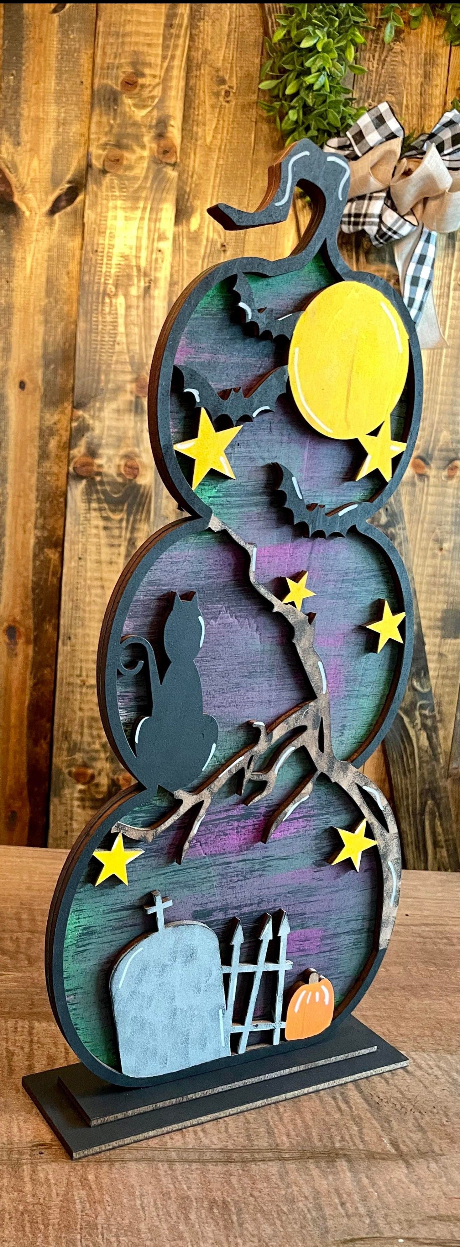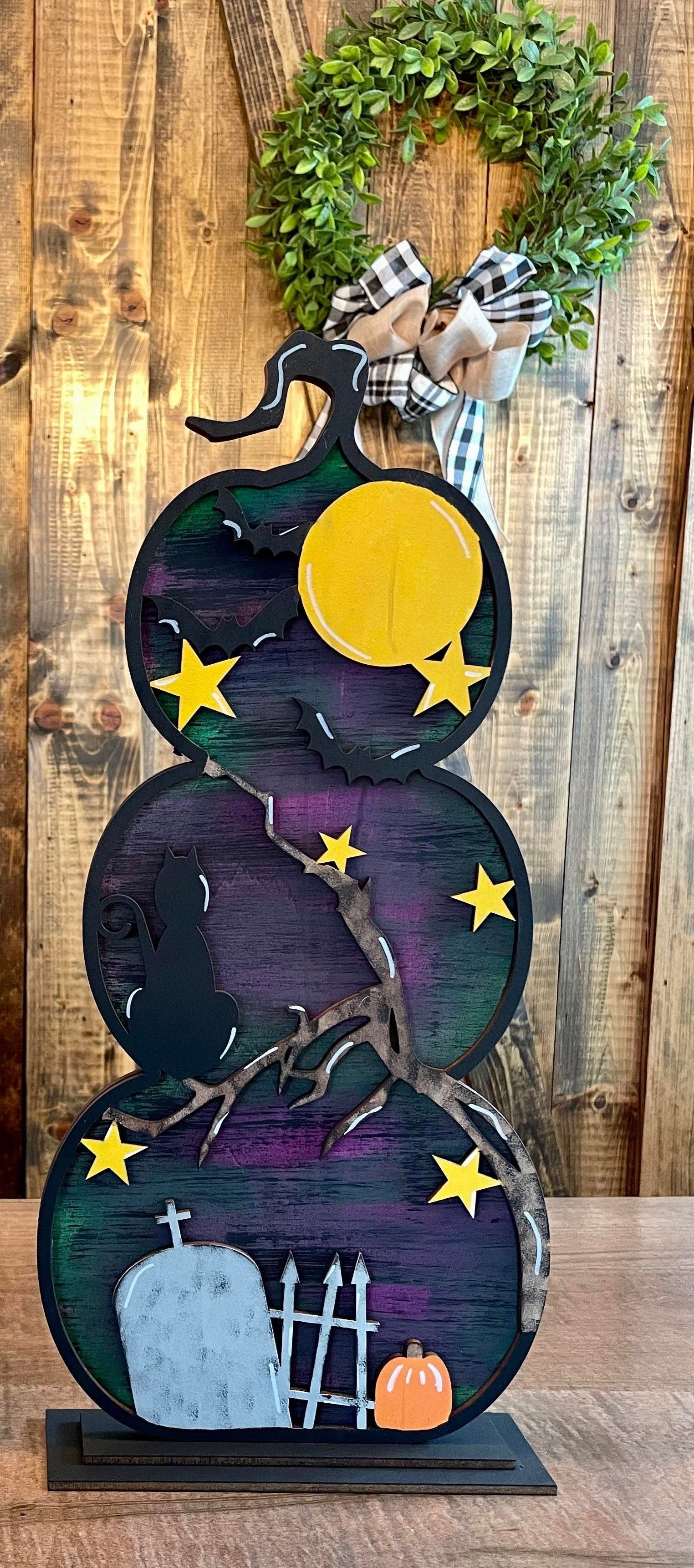 3D Standing Stacked Pumpkins Spooky Graveyard