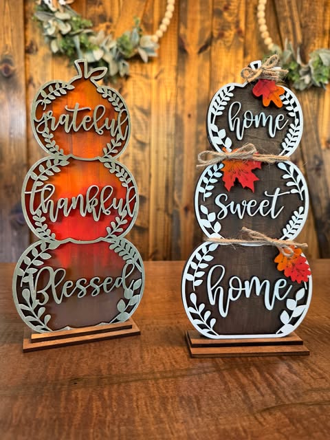 All signs, words, and shapes are unfinished and ready to paint. The words and shapes are laser cut so all edges will be dark brown to black with smooth edges. Some burn marks may appear on the backside.