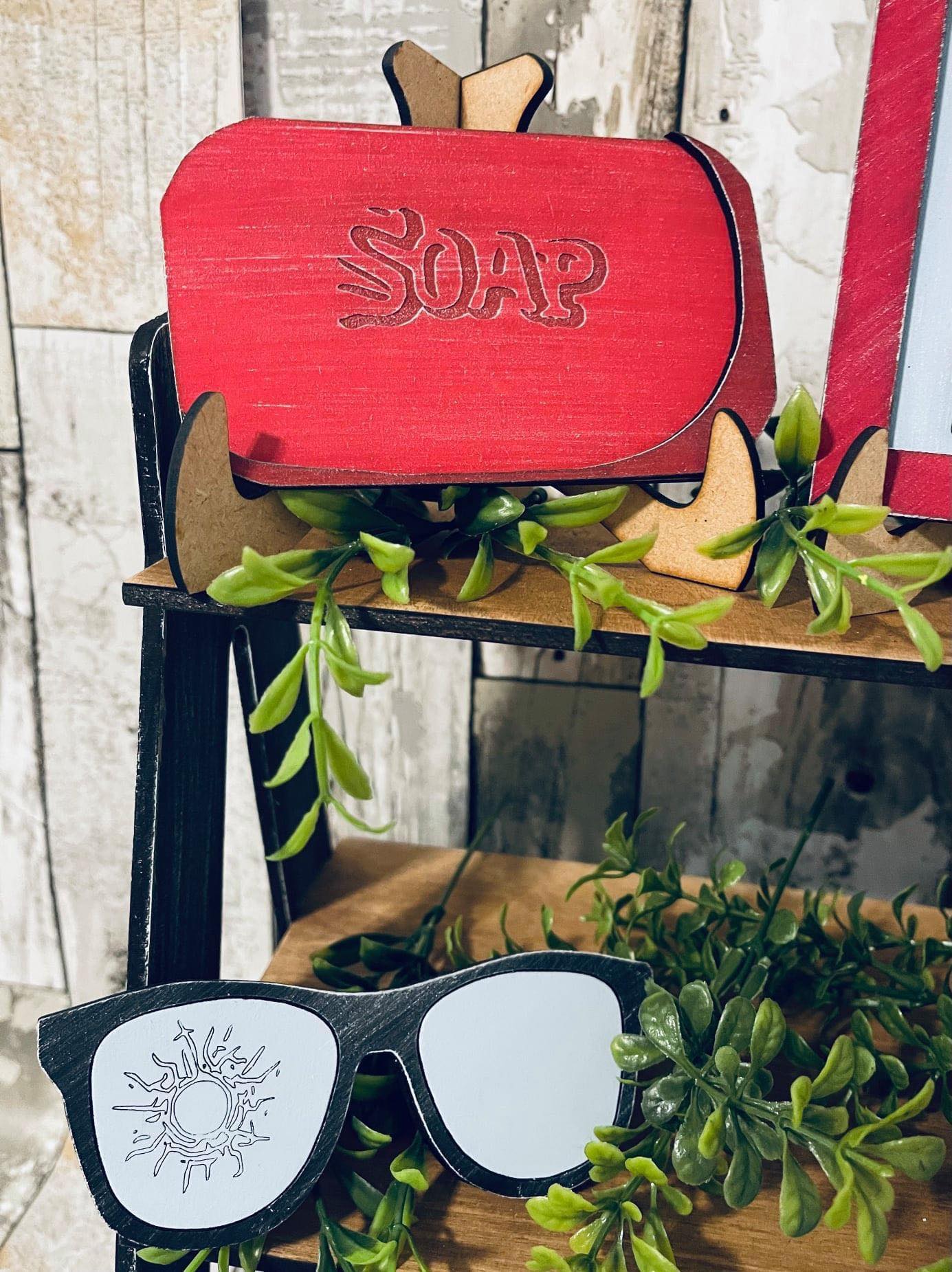 The 3D America Tiered Tray set includes 6 pieces (Leg lamp, Red Ryder B B Gun, Bunny suit, Soap, Oh Fudge sign, Broken glasses, Fragile Box)