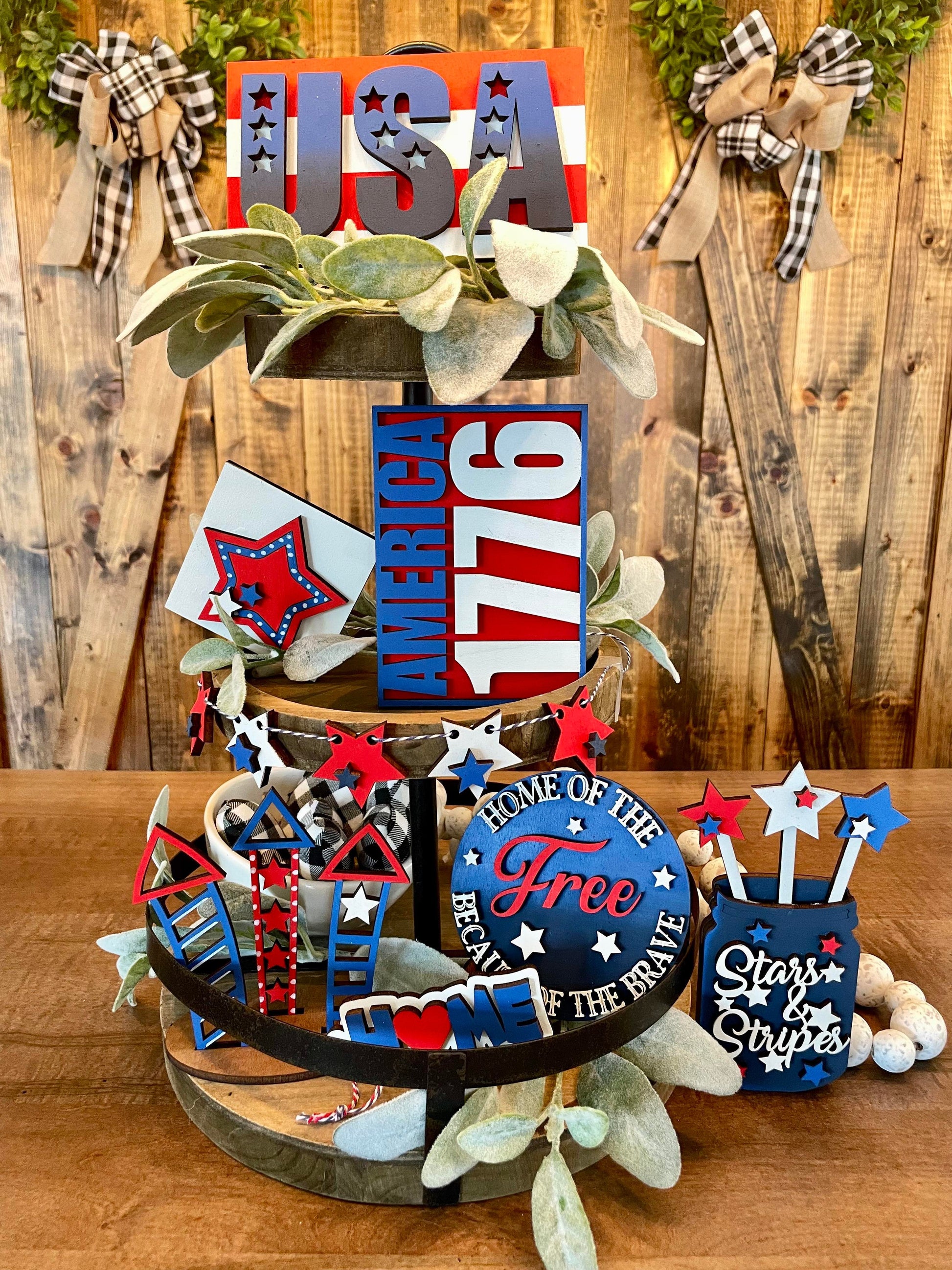 The 3D America 1776 Tiered Tray set includes 8 pieces