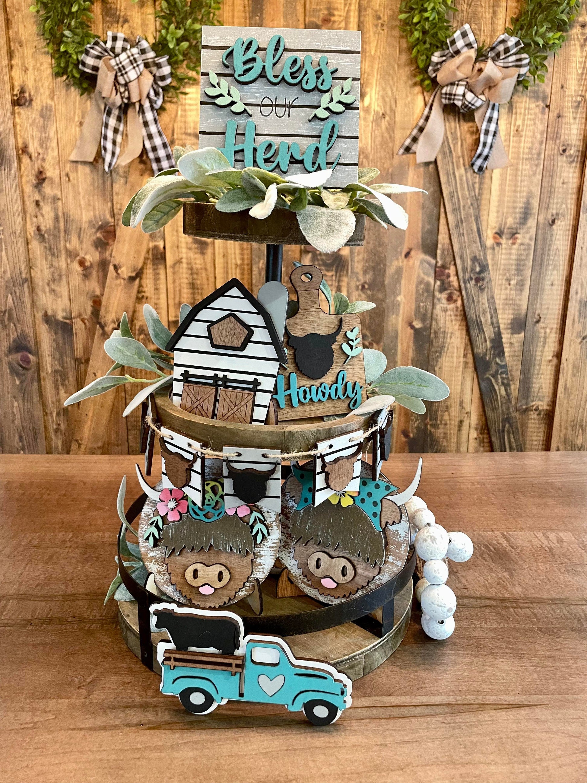 The 3D Highland Cow Tiered Tray set includes 7 pieces