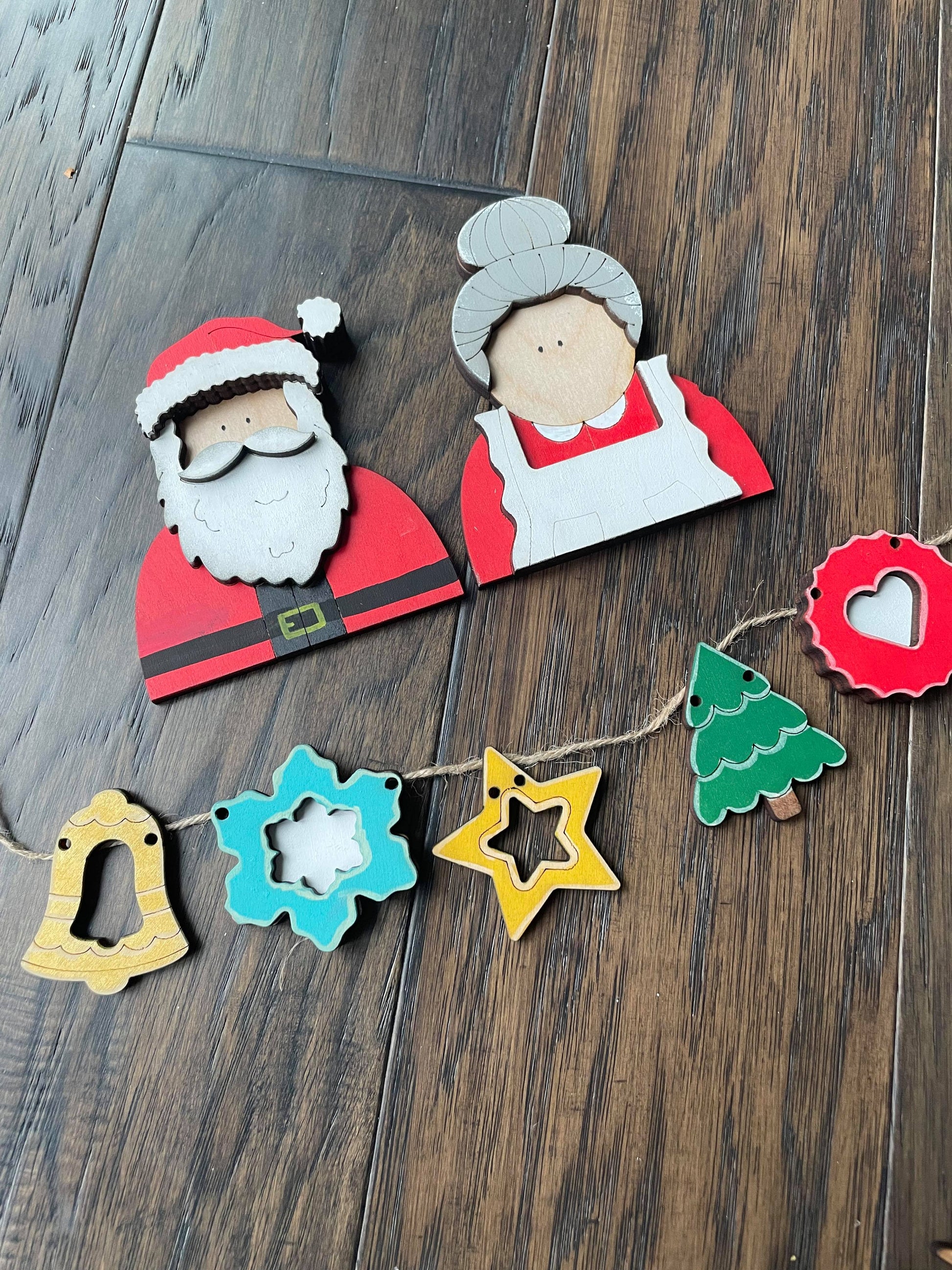 3D Tiered Tray Decor - Santa, Mrs Claus and Cookie banner